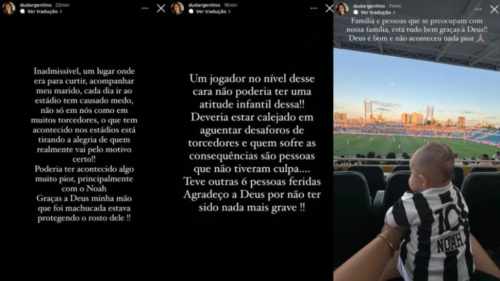 Após o fim da partida, Chrystian Barletta e sua esposa utilizaram as redes sociais para se pronunciar sobre a situação. O acontecimento deixou ambos revoltados e, de acordo com a mulher de Barletta, o pior foi evitado, já que ela estava com o filho bebê do casal no colo.