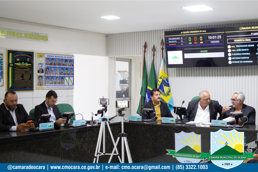 Foi realizada na última quinta-feira (13), a 12ª sessão ordinária de 2023, no plenário da Câmara Municipal de Ocara Vereador José Pires de Freitas. Após entoarem o hino municipal e orarem, os vereadores apreciaram cinco novos projetos.