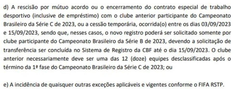 Este novo período de contratações está disposto pelo item “D”, do inciso 3, do artigo 33 do Regulamento Nacional de Registro e Transferência de Atletas da CBF. Veja o trecho: