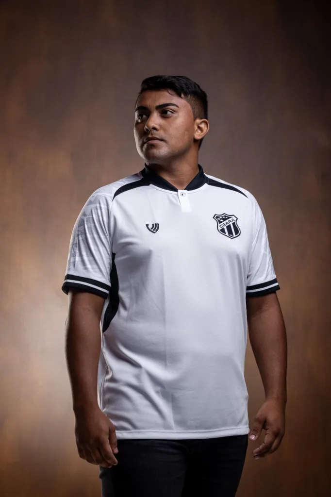 O novo uniforme, produzido no tecido Dry Jacquard, tem a cor branca predominante, com faixas pretas nos dos ombros. Na parte frontal, há também um botão para abertura da gola. A camisa é mais um lançamento da marca própria do Ceará, a Vozão.