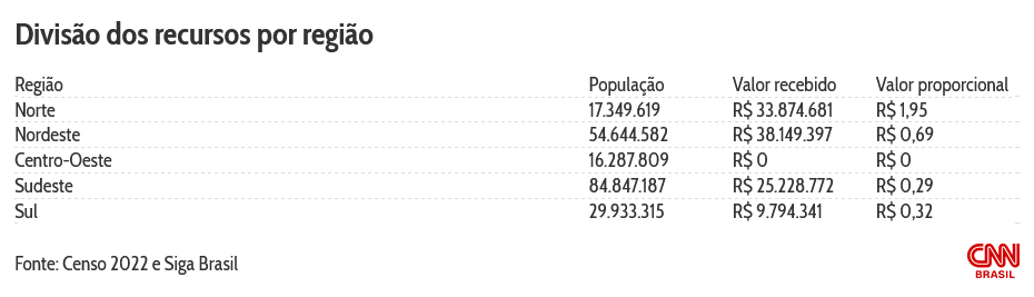 Segundo levantamento exclusivo da CNN, os recursos das “emendas pix” foram destinados prioritariamente para municípios pequenos e pobres, como São Luiz. A proporção entre o dinheiro repassado e os habitantes dos municípios, muitas vezes, é de mais de R$ 100 para cada cidadão.