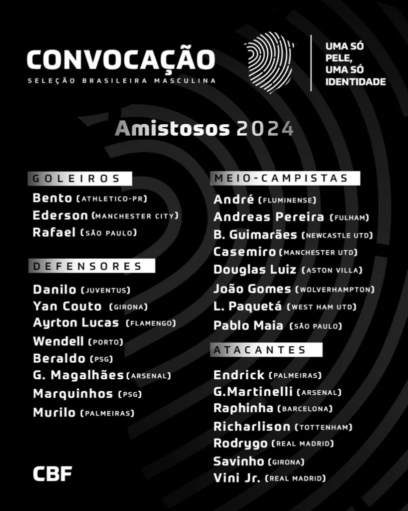 Abaixo, confira os outros 25 jogadores convocados por Dorival Júnior.