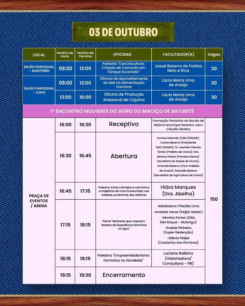 Sexta-feira, 03 de Outubro: Mulheres do Agro e Noda de Caju