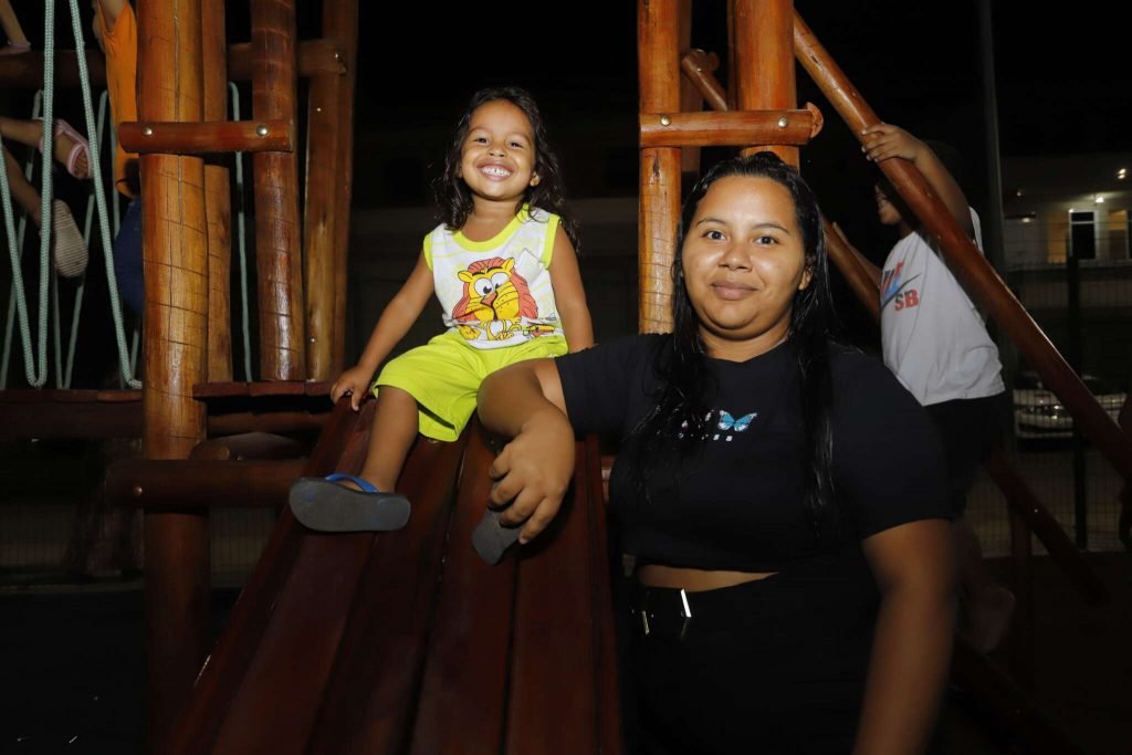A baturiteense Ranielly Rodrigues, 22, levou o filho Christian Rodrigues para se divertir nos espaços. “Criança que brinca tem mais oportunidades de crescer bem. Eu também me sinto muito bem aqui”.