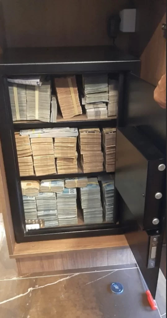 A PF não divulgou o nome dos alvos. Na casa de um policial civil apontado como operador do esquema, em Brasília, foi apreendida uma grande quantidade de dinheiro vivo dentro de um cofre (veja a imagem acima). O valor exato ainda será apurado, mas a estimativa é de que sejam mais de R$ 4 milhões só nessa apreensão.