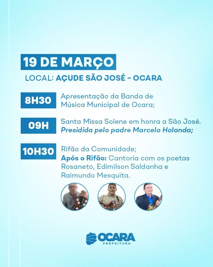 A comunidade de Açude São José, em Ocara, se prepara para um momento especial de fé, cultura e tradição nesta quarta-feira, 19 de março, com a realização da Festa de São José. O evento promete reunir fiéis, moradores e visitantes em uma manhã de devoção e celebração, fortalecendo os laços comunitários.