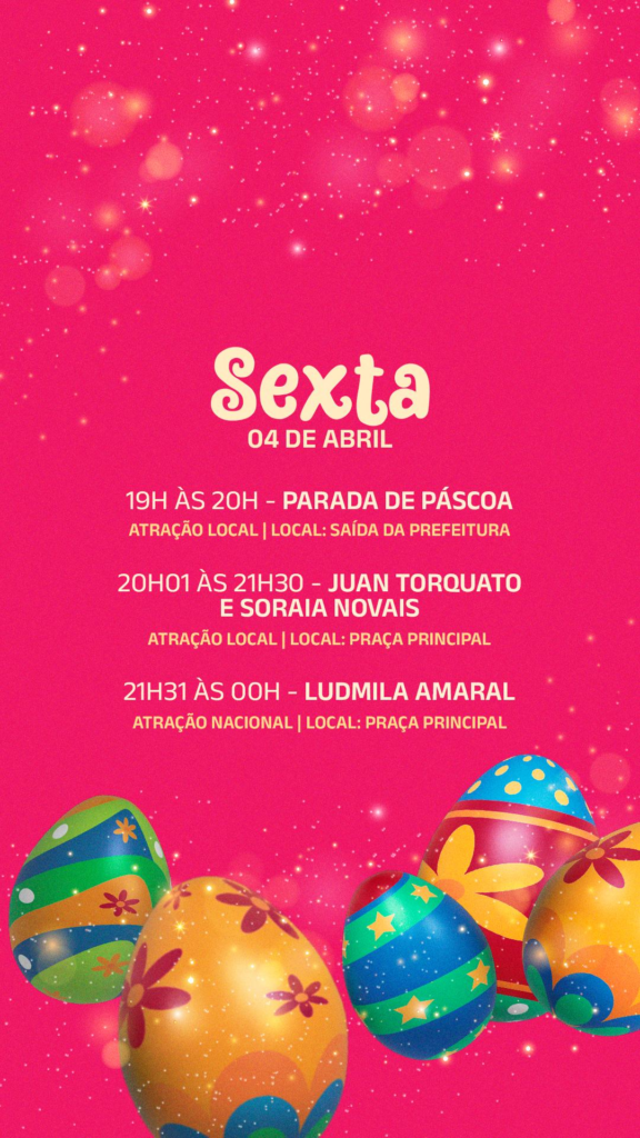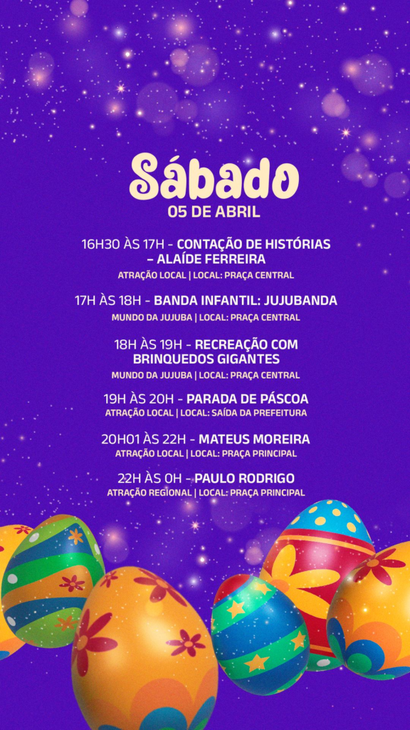 ✨ 19h às 20h – Parada de Páscoa (Saída da Prefeitura)