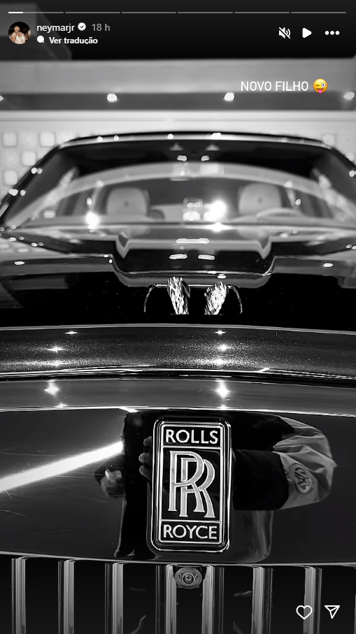 Nesta quarta (14), Neymar postou em suas redes sociais uma foto de sua mais nova aquisição: um Rolls-royce. O carro de luxo custa cerca de R$ 3 milhões no Brasil.