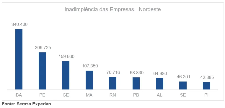 O Nordeste do país alcançou em junho 1.110.856 empresas com contas atrasadas, conforme revelou o Indicador de Inadimplência das Empresas da Serasa Experian. A Bahia (BA) foi a Unidade Federativa (UF) com o maior número de companhias no vermelho, seguido de Pernambuco e Ceará.